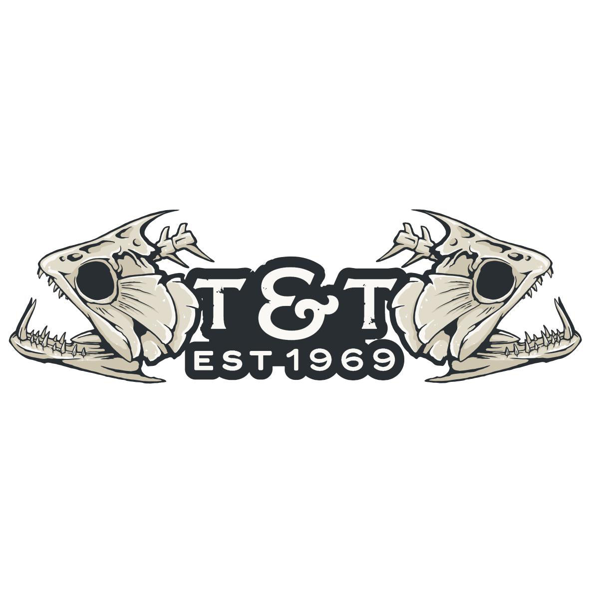 NEW: This 4" x 1.32" fish skull head T&T sticker features a high-quality matte finish and UV durability. Pop this on your favorite T&T Yeti to add some more T&T to your life!